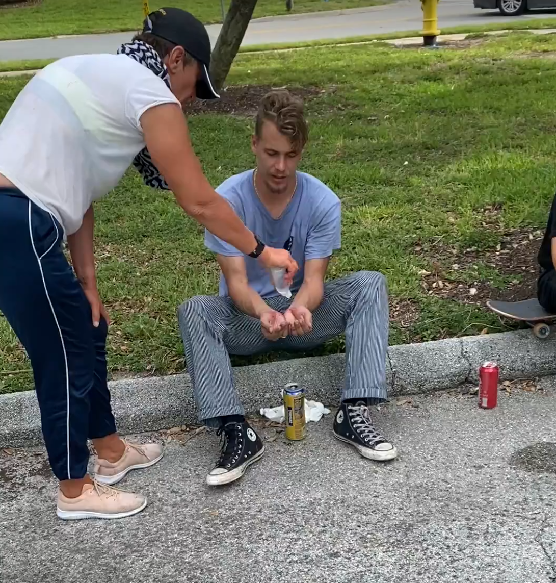 She left after a little bit but returned just a while later with some granola bars and crackers for Justin. He took the snacks and continued talking with her. Jacob was going to give her another cig for the care package, but then she said he looked like Hitler because of his mustache. He almost didn’t give it to her because of that but did in the end. She left, only to return again.
